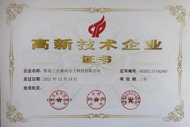 2021年12月14日,由國家稅務(wù)總局、青島市稅務(wù)局、青島市科技局、青島市財政局聯(lián)合頒發(fā)的的高新技術(shù)企業(yè)認證名單正式公布,青島三合盛高分子科技有限公司(以下簡稱青島三合盛)順利通過高新技術(shù)企業(yè)認證,這標(biāo)志著青島三合盛在創(chuàng)新管理、人員梯隊、科技研發(fā)以及科技成果轉(zhuǎn)化、產(chǎn)業(yè)化等方面又邁上了一個新的臺階!
